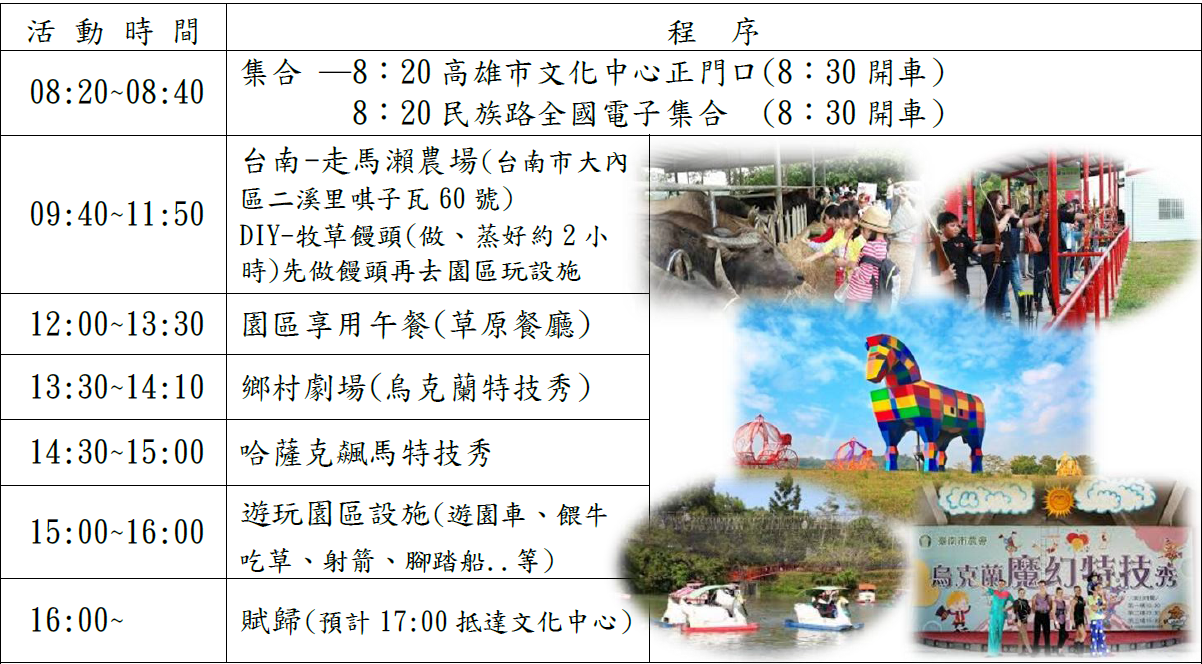 114年度「台南-走馬瀨農場一日遊」並邀請育幼院院童同遊,敬邀會員攜同眷屬踴躍報名參加!