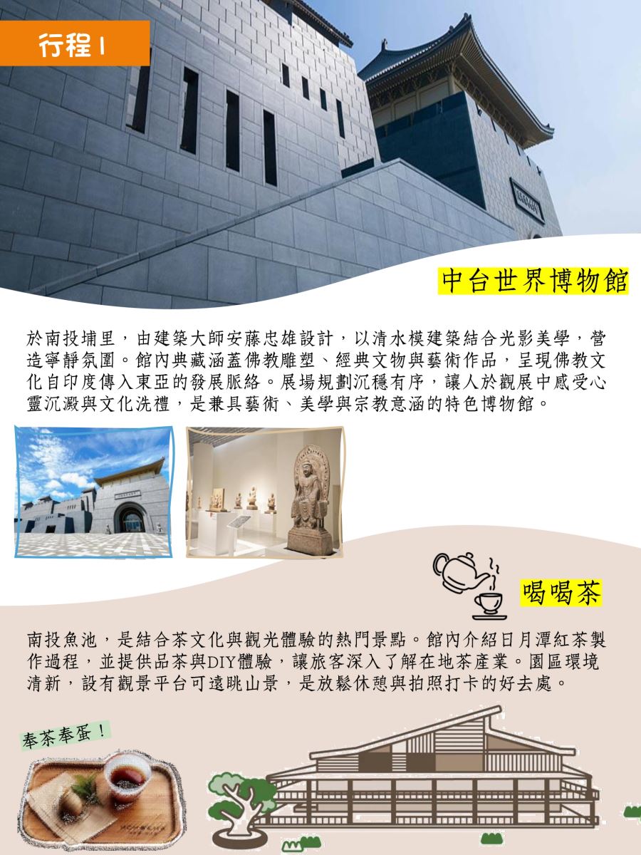 【中市公會】115年7月31日(五)「南投藝文醇香:茶香、酒香、巧克力香」一日遊活動 發佈日期 / 2026-04-16 資料來源 / 瀏覽人數 / 92 活動日期115-07-31(五) 07:29 ~ 18:00 報名期限115-04-16(四) 10:50 ~ 115-06-30(二) 10:50 主辦單位社團法人臺中市會計師公會 報名方式 餐飲提供否 聯絡窗口04-23730078#17王小姐 活動內容: