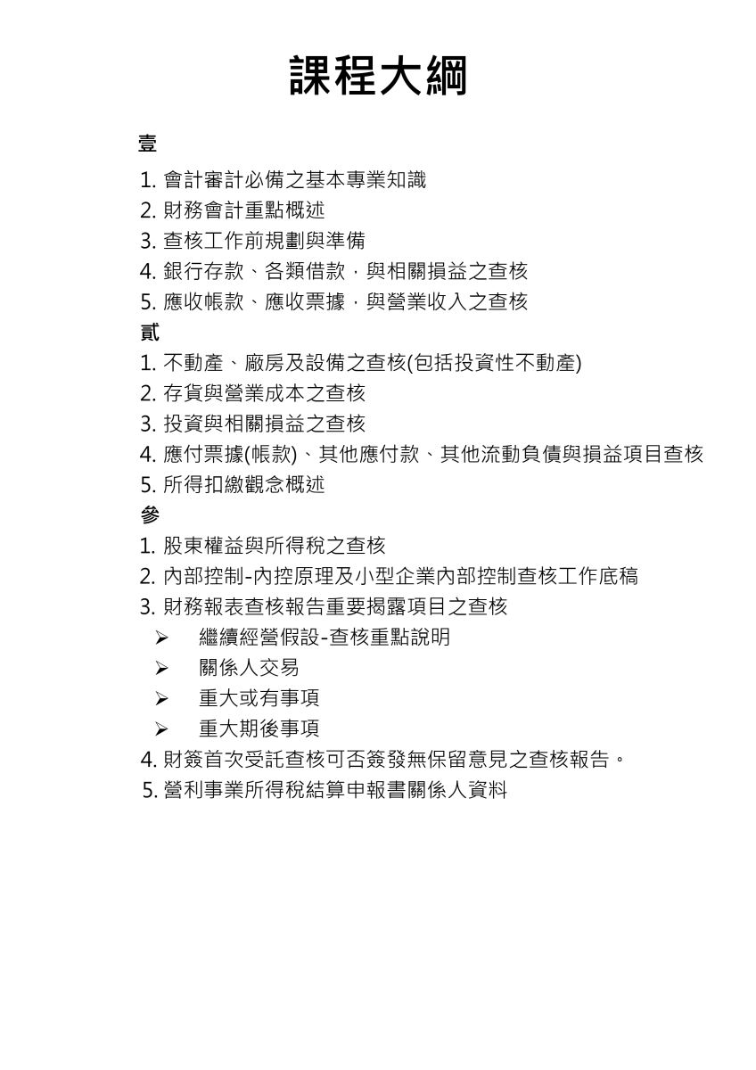 115年7月23日、7月27日、7月30日舉辦『會計師扎根養成系列專題』財務稅務查核入門講習會 發佈日期 / 2026-02-10 資料來源 / 瀏覽人數 / 191 活動日期115-07-23(四) 09:00 ~ 115-07-30(四) 16:00 報名期限115-02-10(二) 09:46 ~ 115-07-22(三) 12:58 活動地點本會教室(臺中市西區台灣大道二段307號八樓之二) 主辦單位社團法人臺中市會計師公會 報名方式 站外報名 餐飲提供否 聯絡窗口04-23730078#17王小姐 活動內容: 報名網址如下 會員: https://member.tchcpa.org.tw/TACCTG/event/detail/62 非會員:https://www.beclass.com/rid=3052572698a8af042b52 非會員:https://www.beclass.com/rid=3052572698a8af042b52